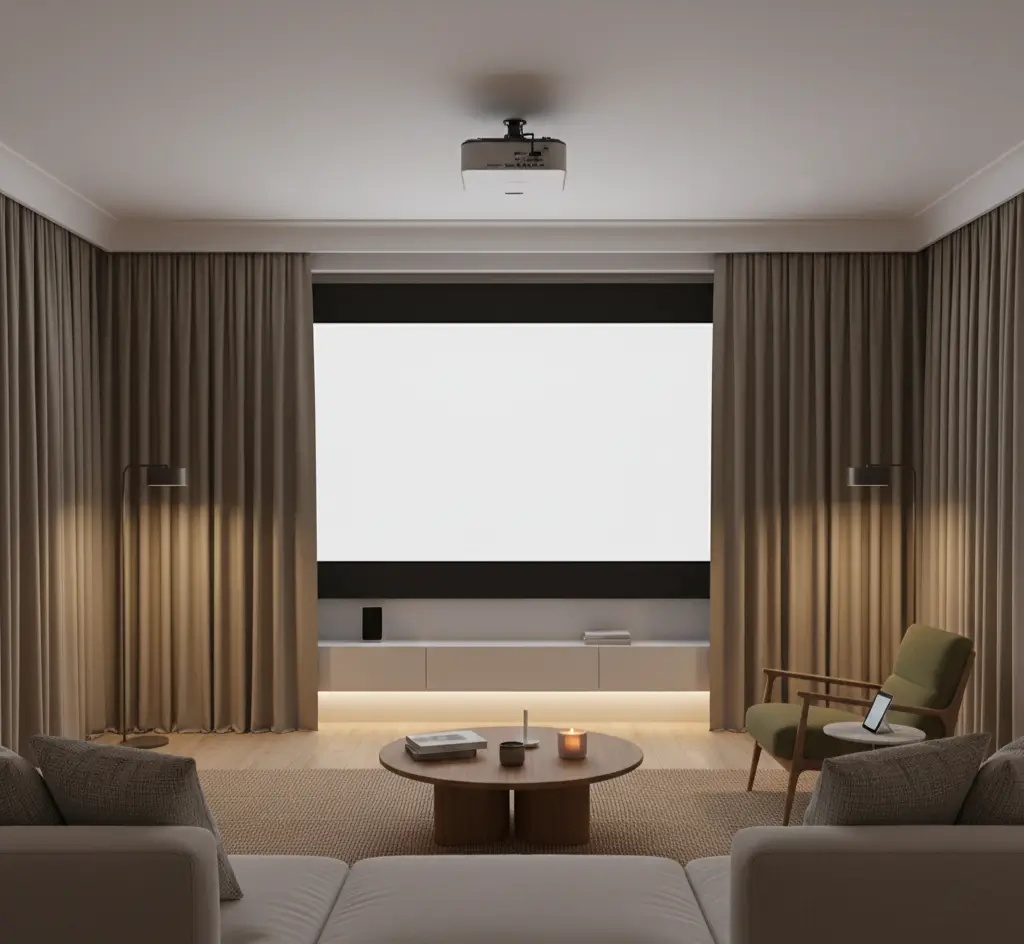 Nos últimos anos, tenho visto cada vez mais clientes substituindo a TV tradicional por projetores na sala de estar. O motivo é simples: a sensação de “cinema em casa” é incomparável. A tela fica maior, o ambiente ganha um clima mais imersivo e a experiência de assistir filmes e séries muda de nível.
