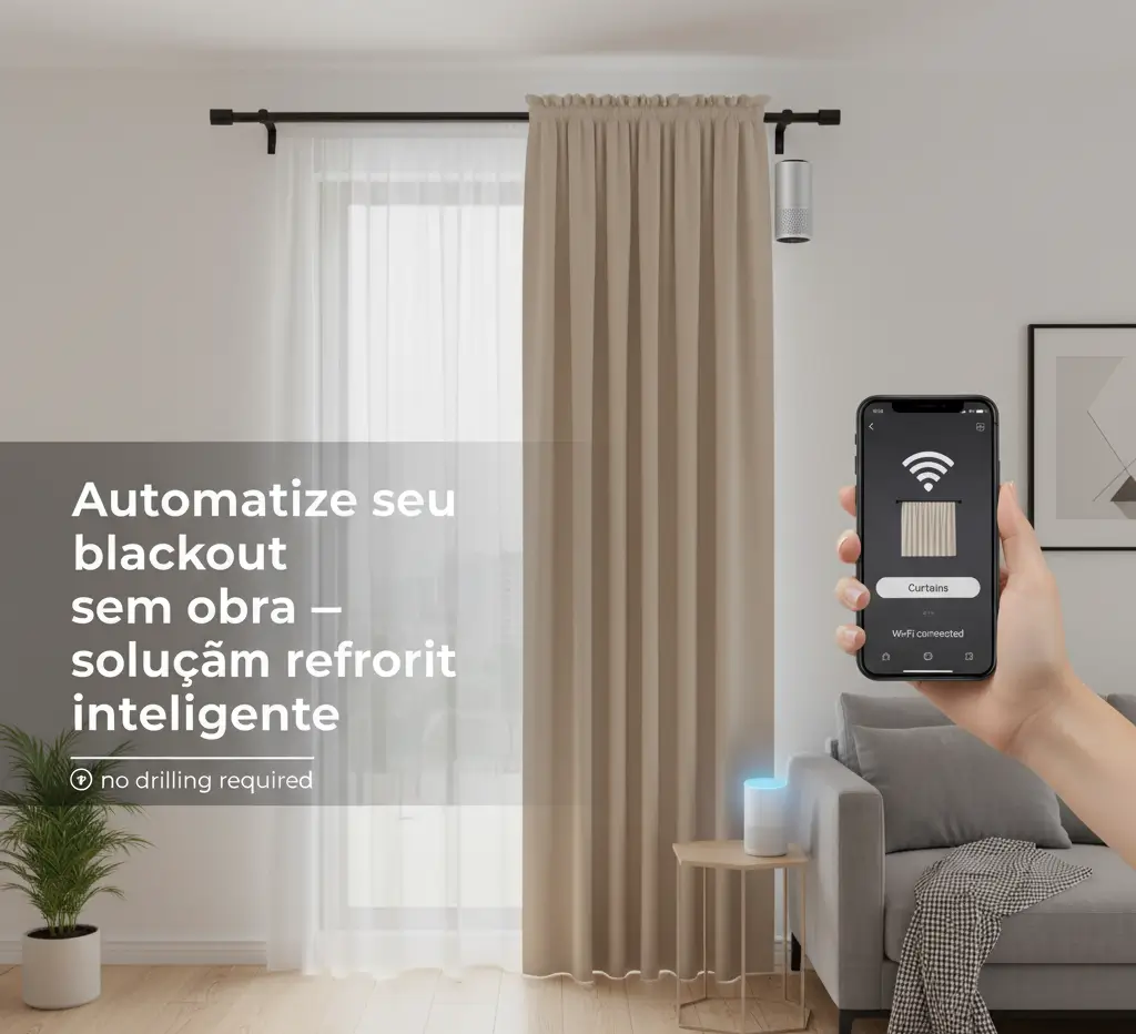 Se você já tem um blackout instalado, antes de trocar tudo, vale avaliar a possibilidade de motorizar via retrofit. Em grande parte dos casos, o resultado é excelente — totalmente integrado ao Google Home, Home Assistant e automações avançadas.