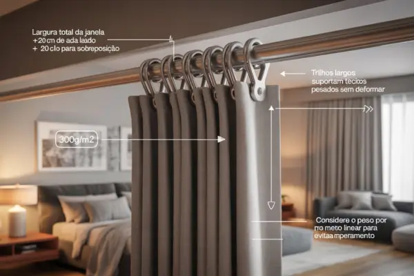 Ao longo dos meus projetos, percebi que a maior causa de falhas em cortinas não é o tecido, nem a costura — é o dimensionamento incorreto do trilho. Sempre que alguém me chama para corrigir um projeto, o problema costuma ser o mesmo: Por isso, desenvolvi um método simples e certeiro para calcular a largura …